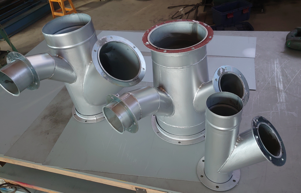 当社の製品はすべて計算されて作られています。圧力損失を最小限に抑え、 エネルギー消費も抑えつつ最大限の効果を発揮するるように設計されています。 製作された金属ダクト配管 単品製作のダクト配管はすべて溶接されており鉄およびステンレスで作られています。